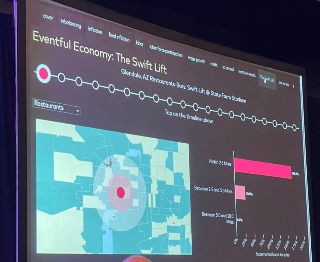 Michelle Meyer (Chief Economist, Mastercard) spoke about the Economic Outlook for 2024, and we found it very interesting. Instead of using regular slides, she used an interactive dashboard-of-sorts to dive into all kinds of numbers – from inflation to GDP, and consumer spending to jobs. She even talked about how big events, like Taylor Swift concerts, affect local economies.